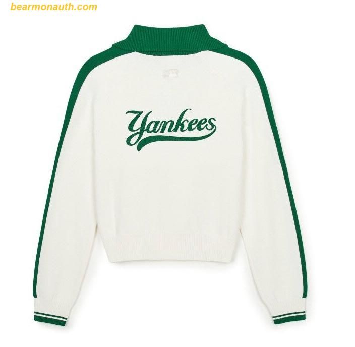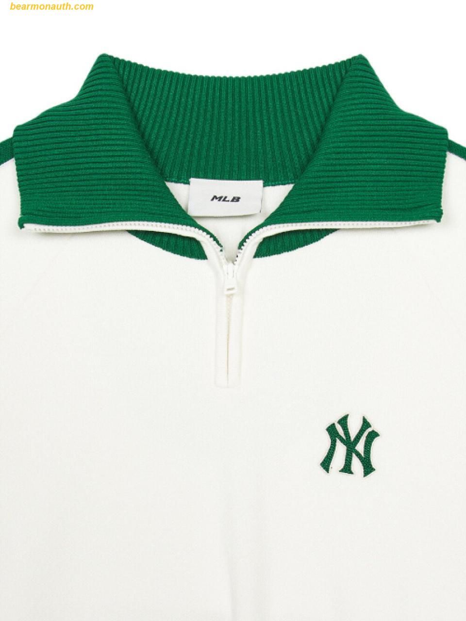 Áo Half-Zip MLB Women's Sporty Varsity Sleeve Contrast Half-Zip Sweater NY (Cream) 3FKPV0444-50CRS
