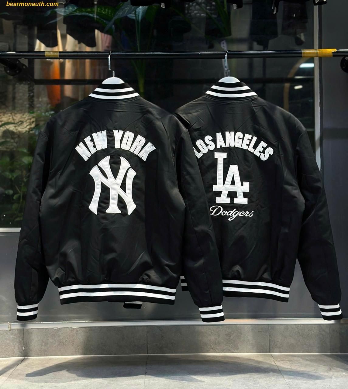 Thiết kế hiện đại: Áo được thiết kế với phong cách Varsity cổ điển, kết hợp với logo của đội bóng New York Yankees hoặc Los Angeles Dodgers, góp phần tạo nên một phong cách thể thao thời thượng. Đặc biệt, màu đen sang trọng giúp bạn dễ dàng kết hợp với nhiều trang phục khác nhau.