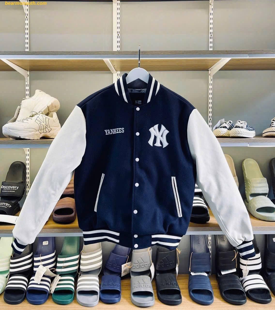 Áo Khoác Bomber New Era Varsity Baseball Jacket New York Yankees Est 1903 Navy (Tay Da)
