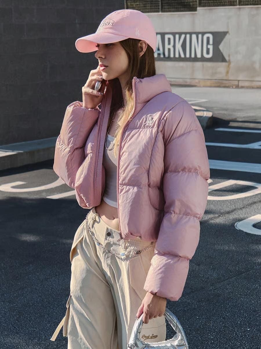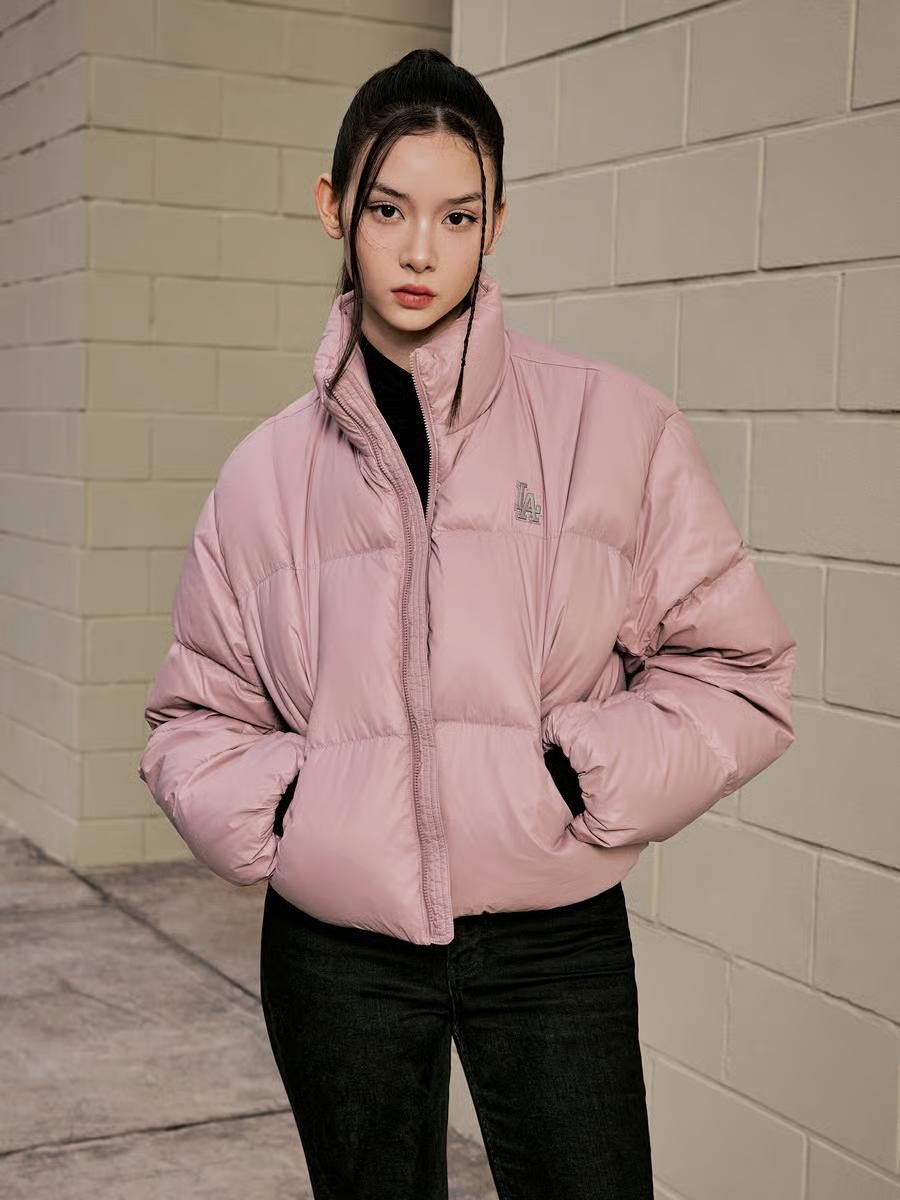 Áo Khoác Phao MLB Women's Crop Curve Padding LA Dodgers – Màu Hồng | Thời Thượng – Ấm Áp – Cá Tính
