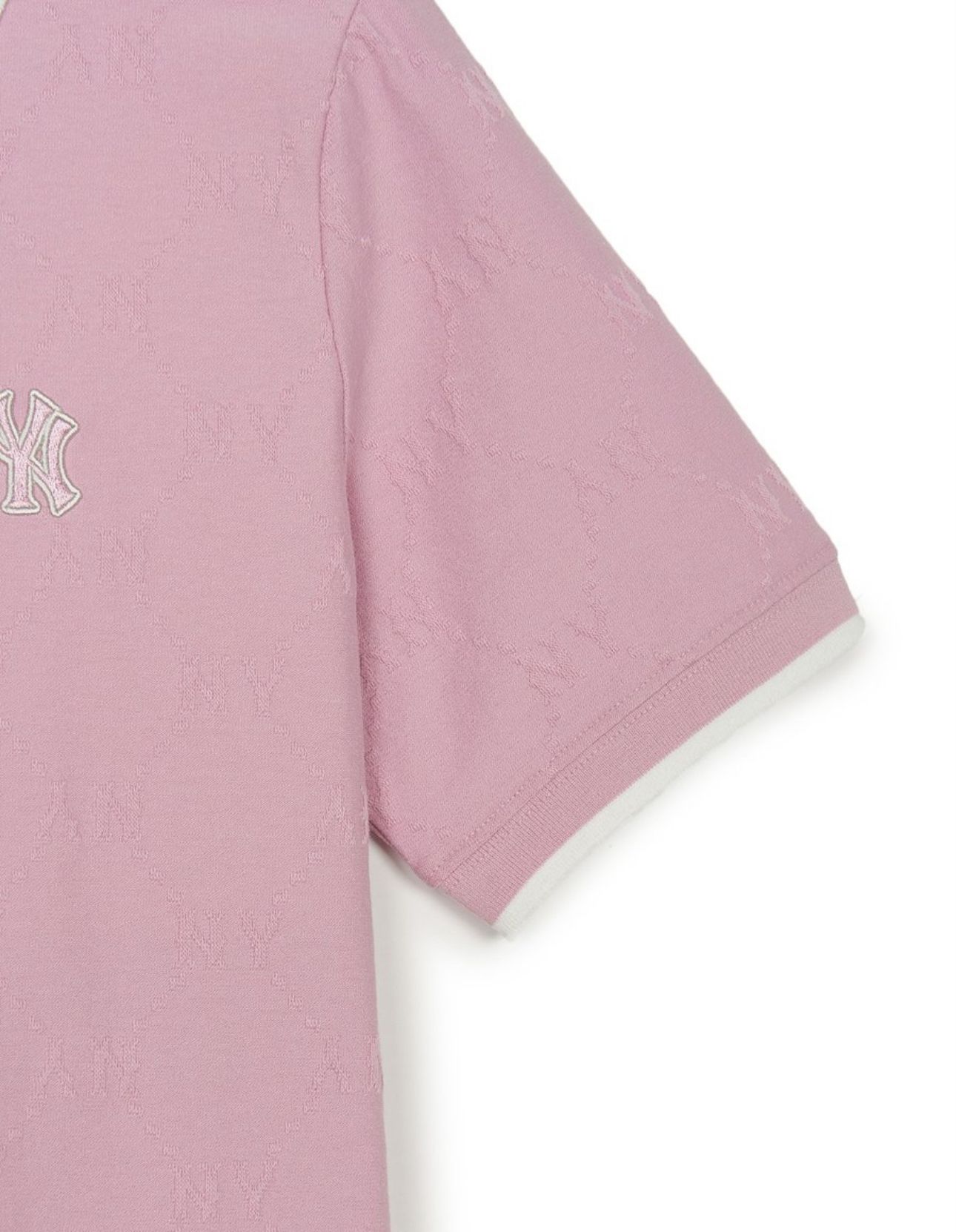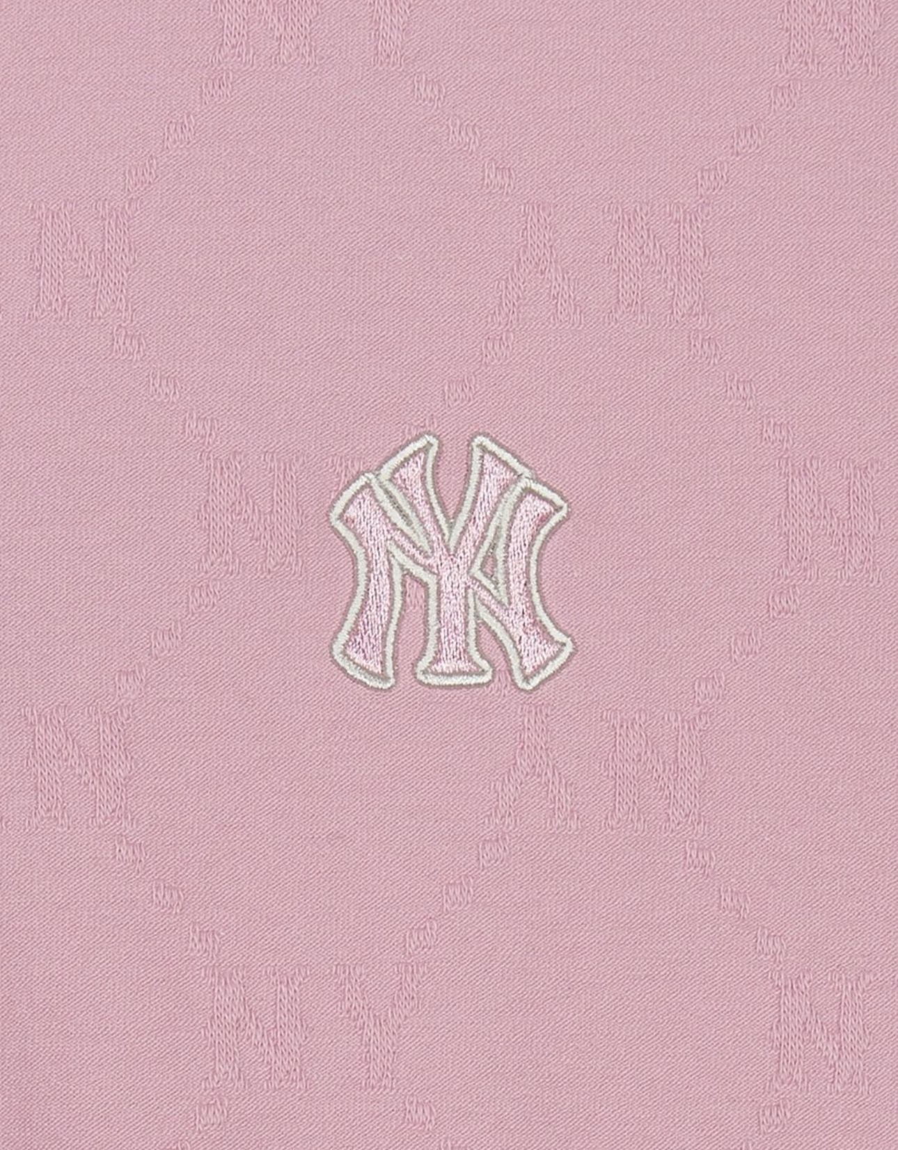 Áo Polo MLB Women’s Dia Monogram Tonal Jacquard Polo T-Shirts New York Yankees 3FPQM0353-50PKM Màu Hồng