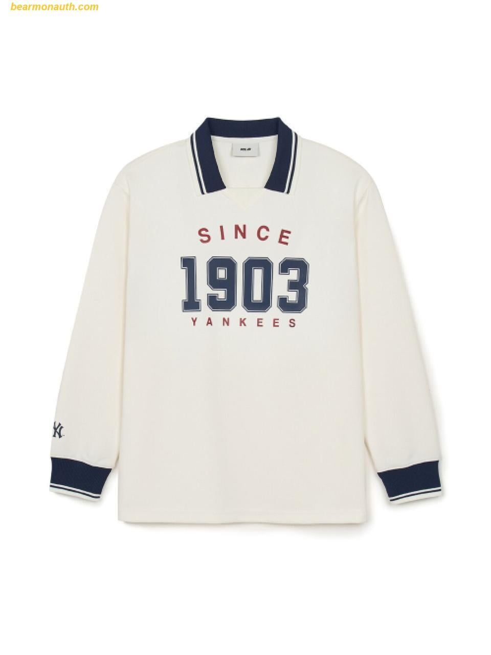 Áo Polo Tay Dài MLB Varsity Long Sleeve Sports Collar T-Shirt NY (Cream) 3ATSV0944-50CRS
