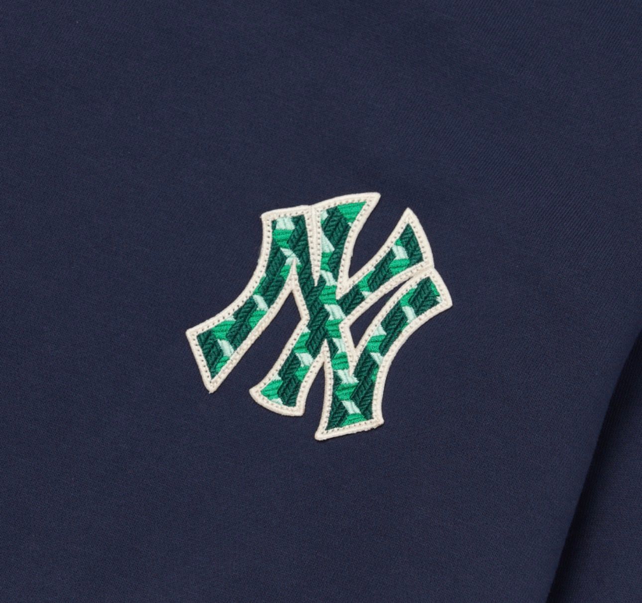 Điểm nhấn đặc biệt của áo nằm ở họa tiết Cube Monogram in chìm khắp bề mặt, kết hợp với logo New York Yankees lớn phía trước, tạo nên sự cá tính và đậm chất thương hiệu MLB. Gam màu xanh navy mang lại vẻ thanh lịch, dễ phối đồ và phù hợp với nhiều dịp.