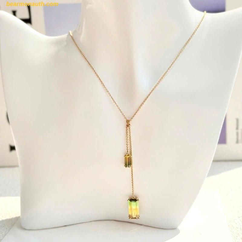 Thiết Kế Độc Đáo: Chiếc pendant với hai viên pha lê lấp lánh được treo trên dây chuyền mạ vàng cao cấp, mang đến vẻ đẹp sang trọng và nổi bật.