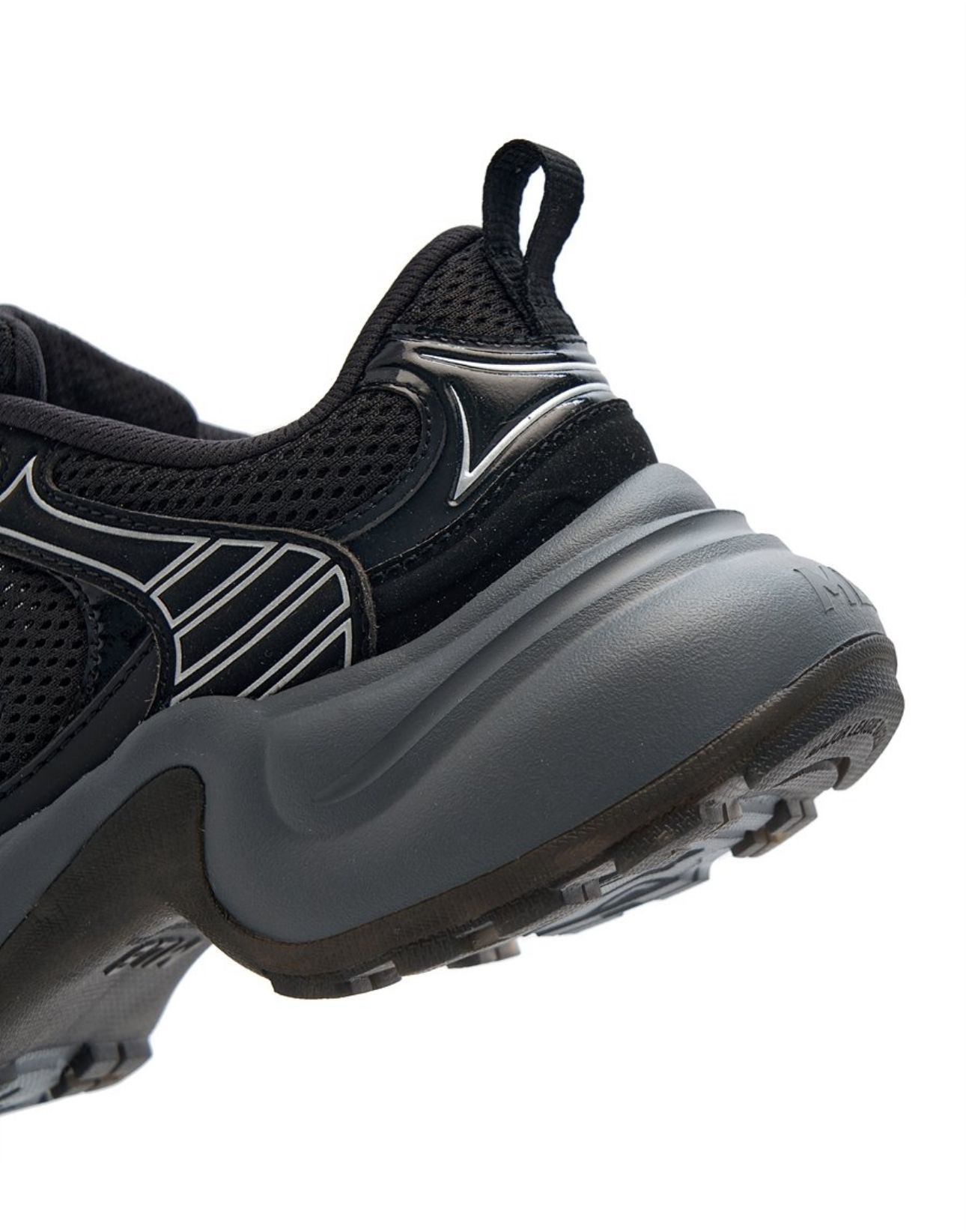 Đế giày to bản, có những đường cắt xẻ độc đáo, tạo hiệu ứng thị giác mạnh mẽ.