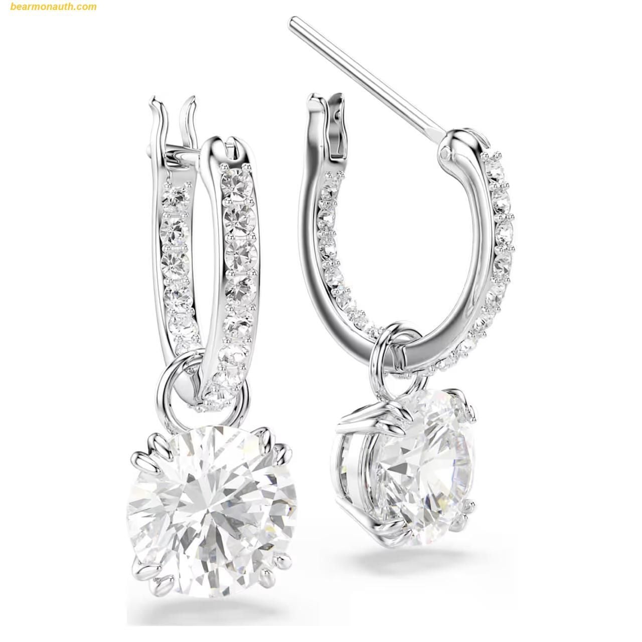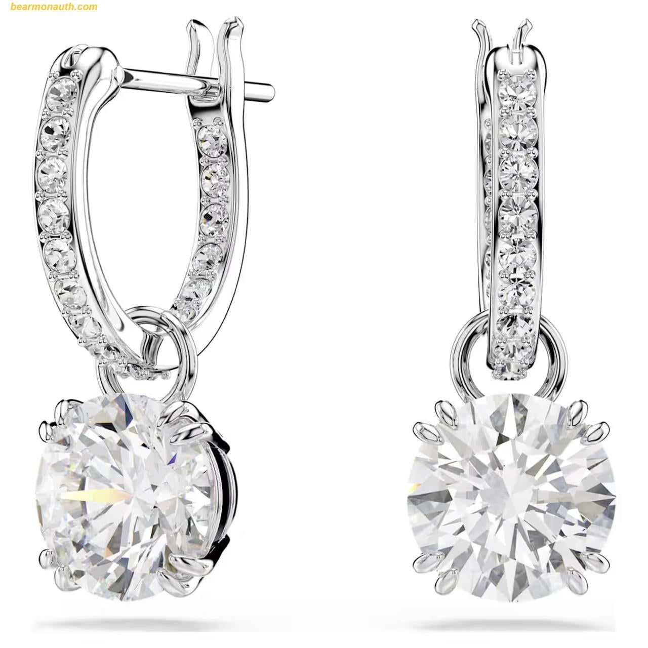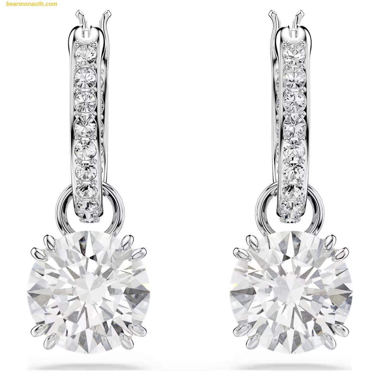 Khuyên Tai, Bông Tai Swarovski Stilla drop earrings Round cut, White, Rhodium plated 5636717