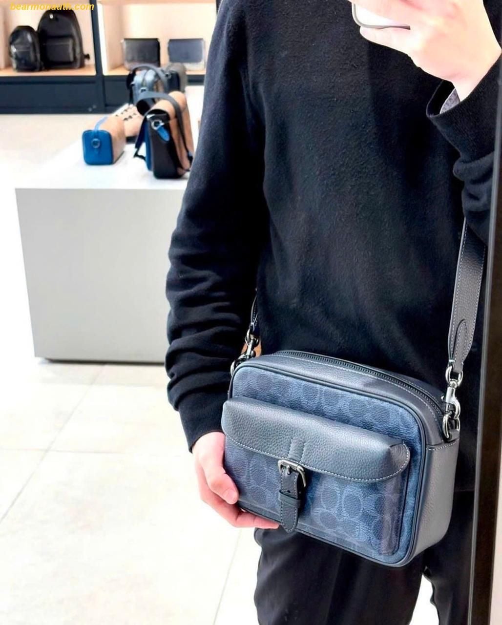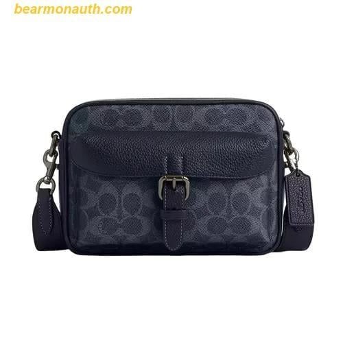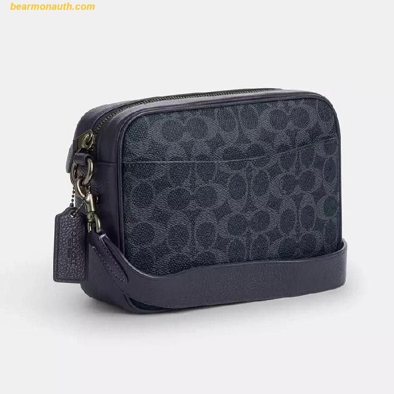 Túi mang kiểu dáng chữ nhật nhỏ gọn, được chế tác từ chất liệu canvas signature đặc trưng của Coach – vừa bền chắc vừa dễ dàng nhận diện thương hiệu. Họa tiết monogram đặc trưng được kết hợp khéo léo với tone màu xanh navy thời thượng, tạo nên sự thanh lịch, cá tính mà không kém phần trẻ trung.