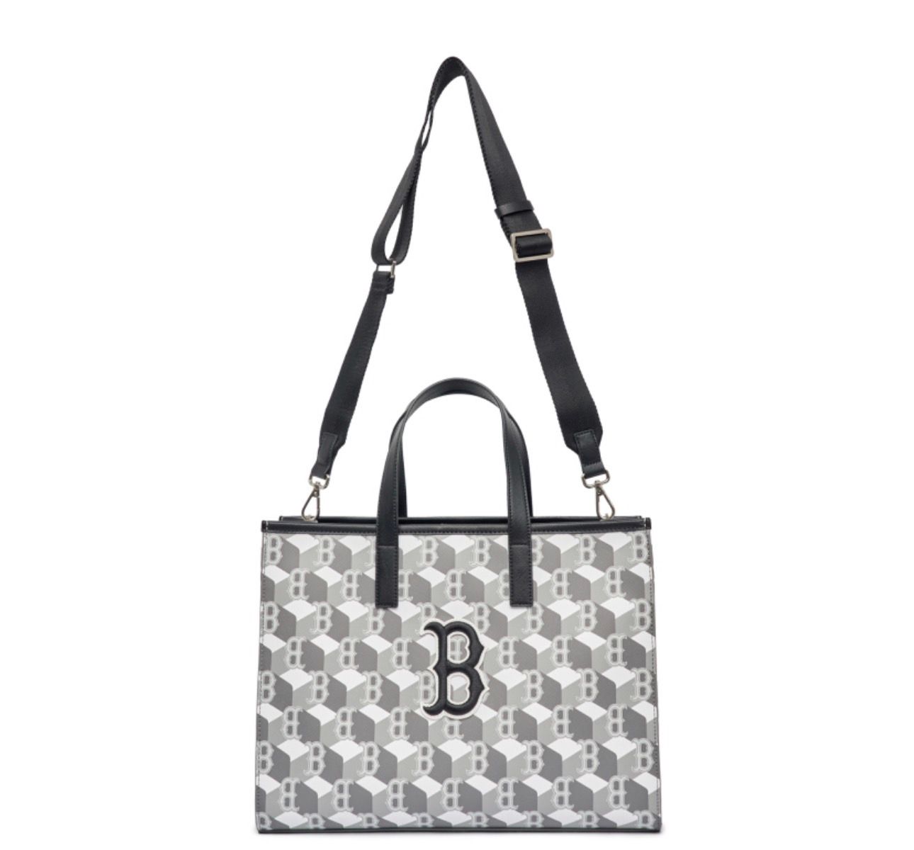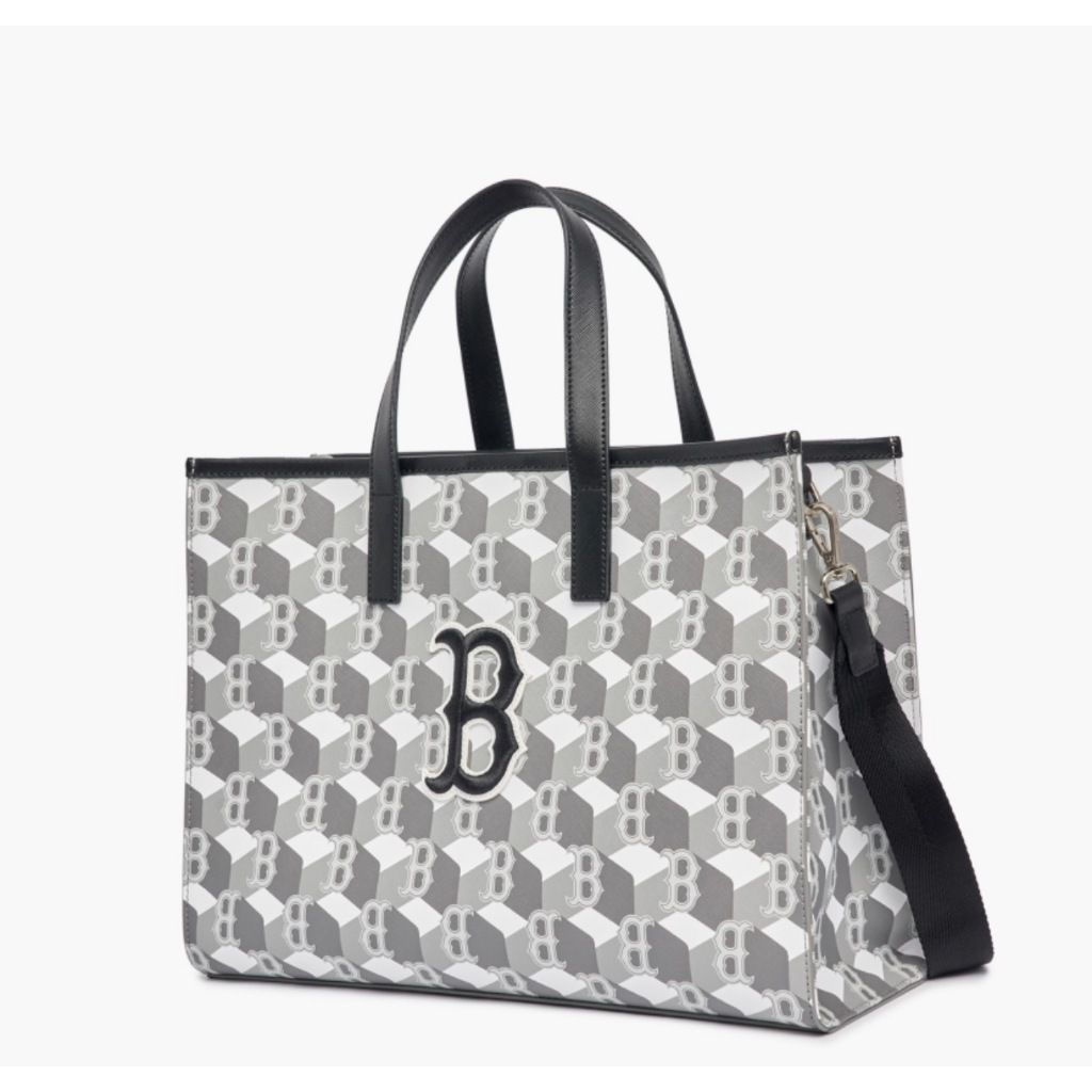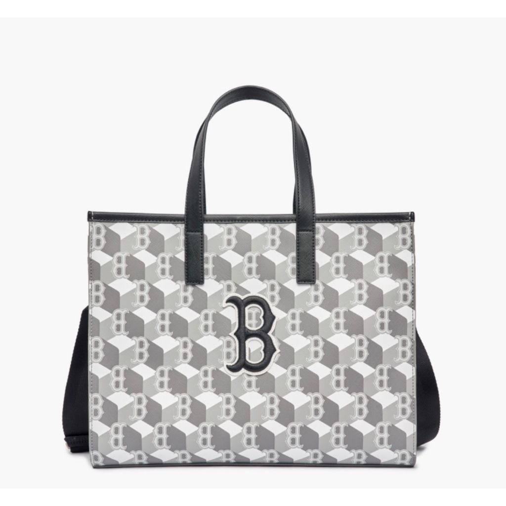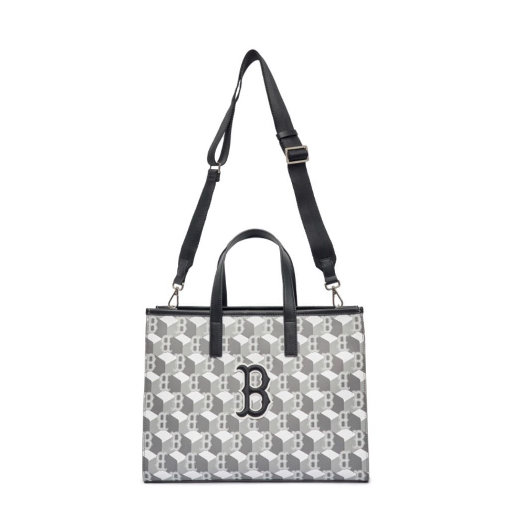 Túi Tote Vuông MLB Cube Monogram Medium Tote Boston Red Sox Màu Xám – Mã 3AORM042N-43GRS