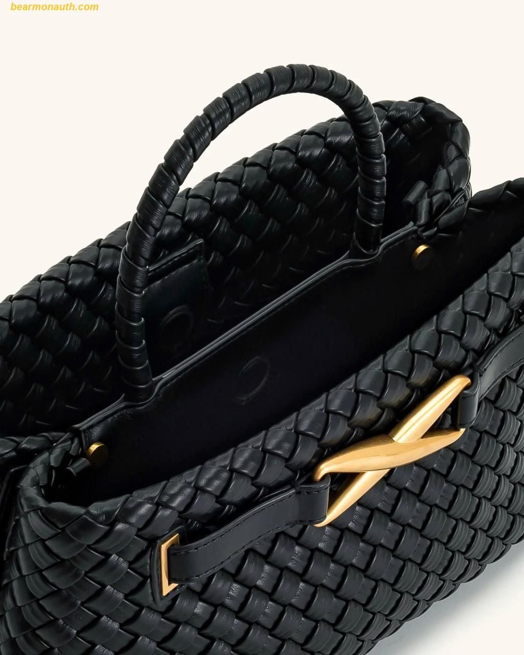Túi xách JW PEI Elora Woven Tote Bag - Phiên bản đen, một lựa chọn hoàn hảo cho những ai yêu thích phong cách hiện đại và sự tiện lợi. Được chế tác từ chất liệu da thuần chay, túi không chỉ mang đến vẻ đẹp thanh lịch mà còn thể hiện một phong cách sống bền vững.