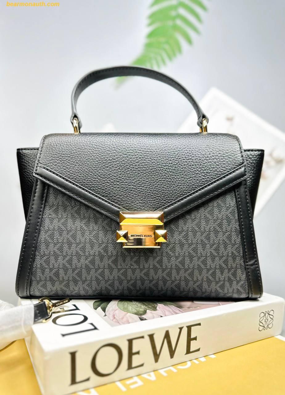 Túi Xách Michael Kors MK Whitney Medium Flap Satchel Đen Logo